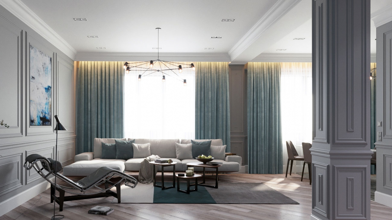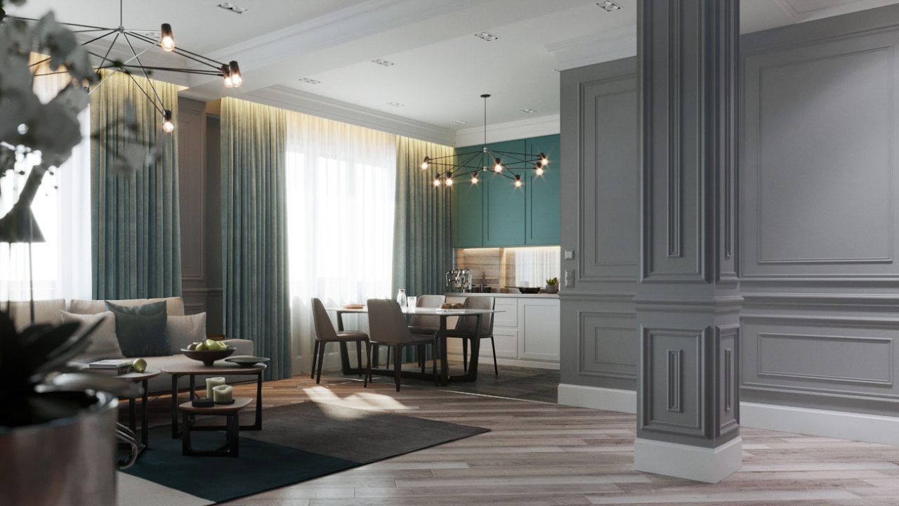 Дизайн интерьера квартиры в классическом стиле с молдингами на стенах